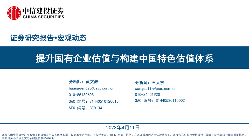 【中信建投证券】【20230411】提升国有企业估值与构建中国特色估值体系-24页