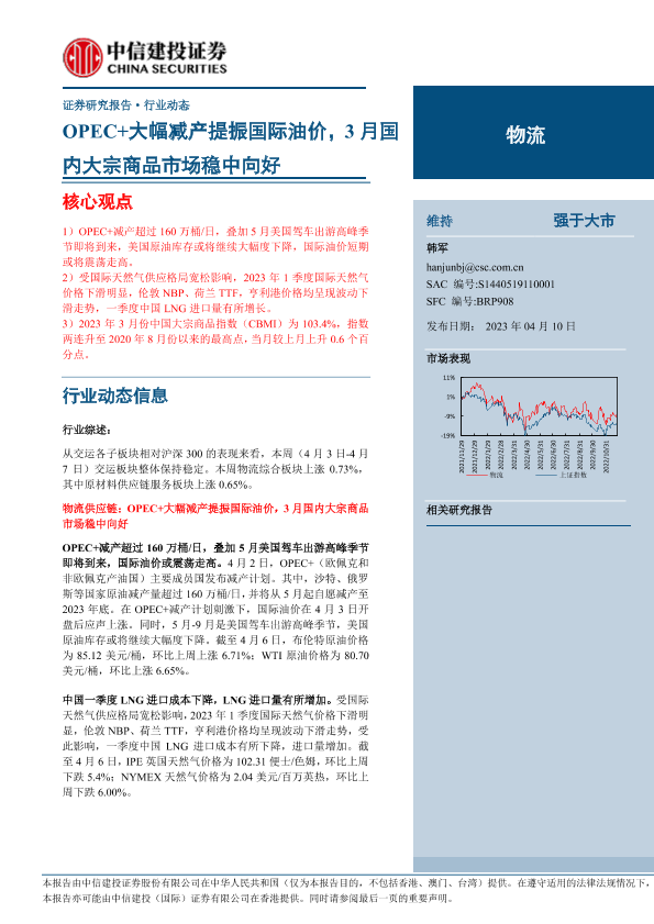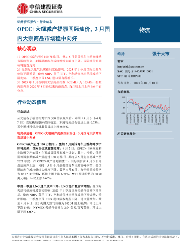 【中信建投证券】【20230410】物流行业:OPEC+大幅减产提振国际油价,3月国内大宗商品市场稳中向好-20页