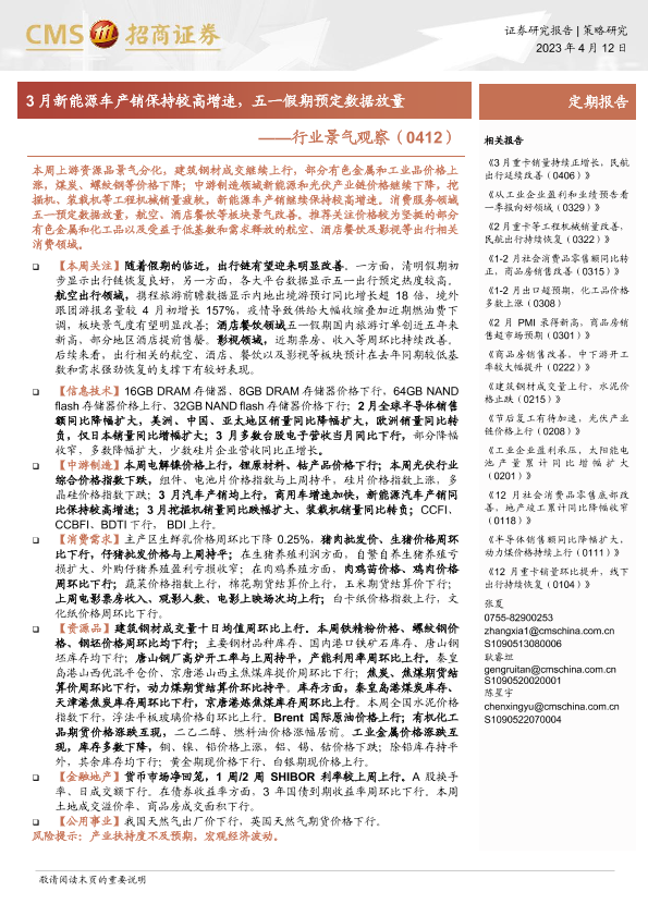【海通证券】【20230412】行业景气观察:3月新能源车产销保持较高增速,五一假期预定数据放量-27页