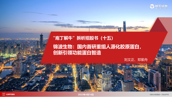 【民生证券】【20230414】医药行业“庖丁解牛”拆析招股书(十五):锦波生物,国内首研重组人源化胶原蛋白,创新引领功能蛋白智造-50页