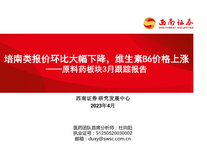 【西南证券】【20230410】医药行业原料药板块3月跟踪报告:培南类报价环比大幅下降,维生素B6价格上涨-30页