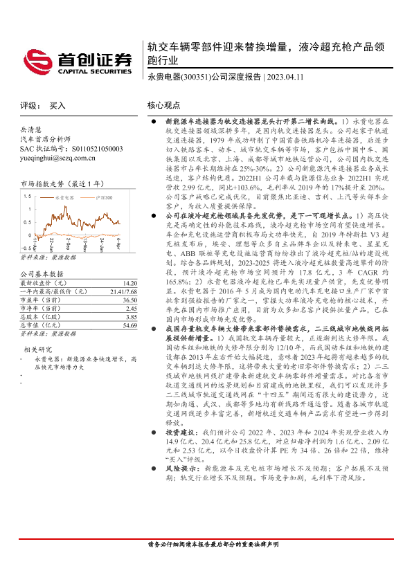 【首创证券】【20230411】永贵电器(300351)公司深度报告:轨交车辆零部件迎来替换增量,液冷超充枪产品领跑行业-31页