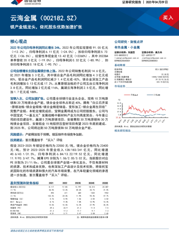 【国信证券】【20230409】云海金属(002182)镁产业链龙头,依托股东优势加速扩张-17页