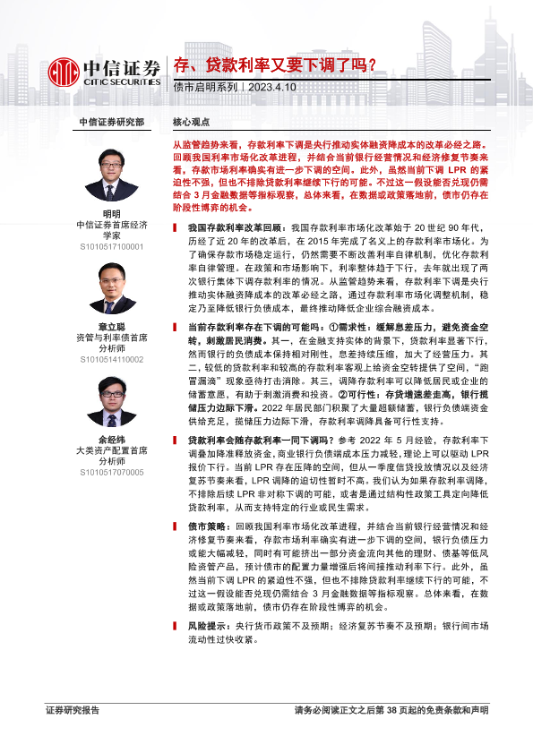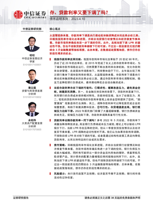 【中信证券】【20230410】债市启明系列:存、贷款利率又要下调了吗?-39页