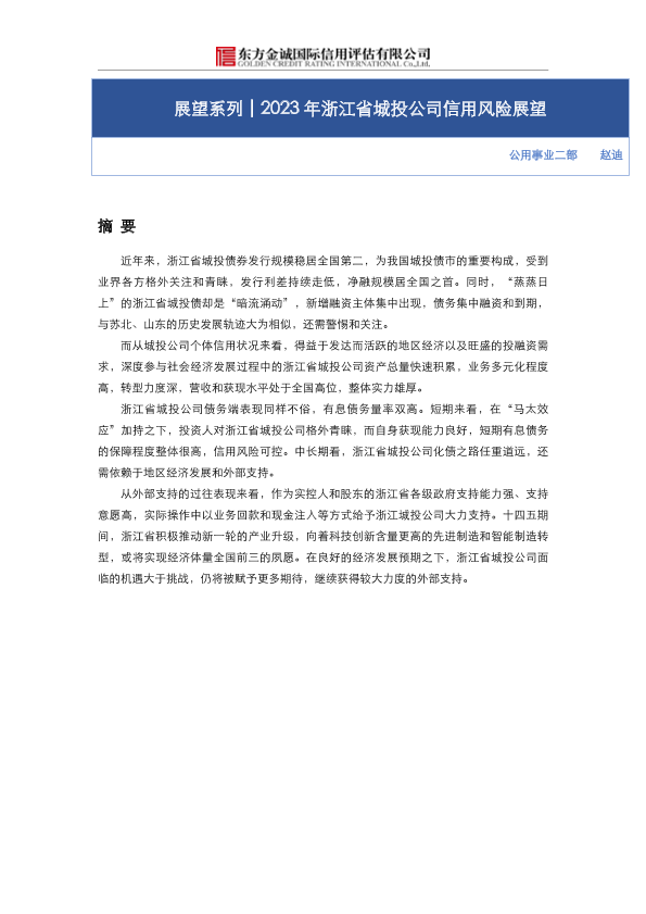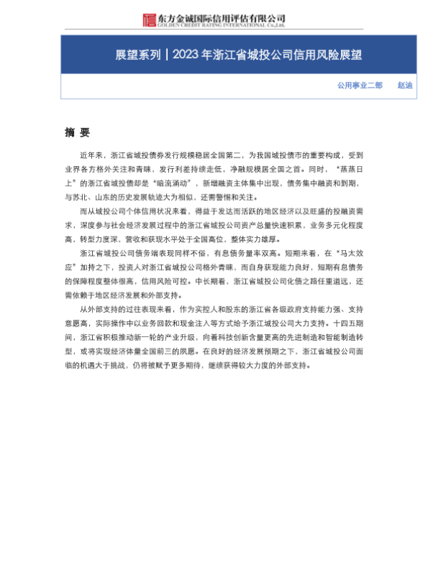 【东方金诚】【20230413】2023年浙江省城投公司信用风险展望-25页