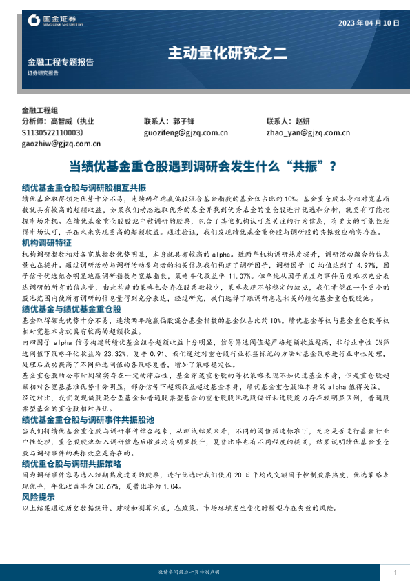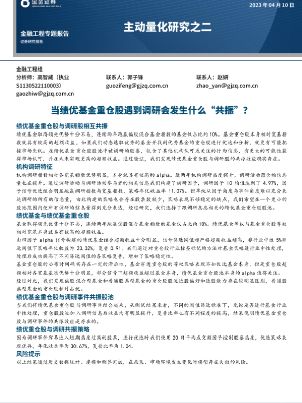 【国金证券】【20230410】主动量化研究之二:当绩优基金重仓股遇到调研会发生什么“共振”?-23页