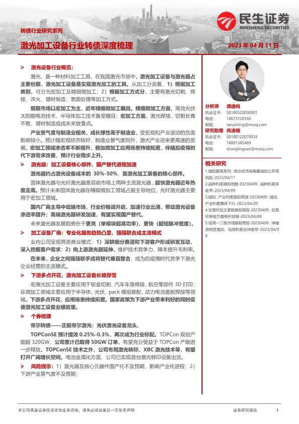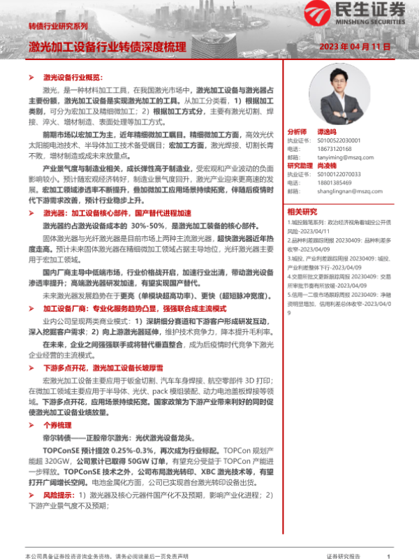 【民生证券】【20230411】转债行业研究系列:激光加工设备行业转债深度梳理-40页