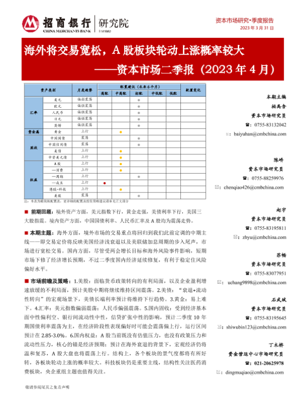 【招商银行】【20230331】海外将交易宽松,A股板块轮动上涨概率较大 ——资本市场二季报(2023年 4月)-29页