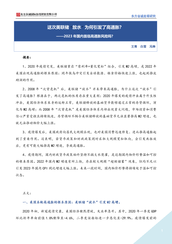 【东方金诚】【2023】这次美联储”放水”为何引发了高通胀——2023年国内面临高通胀风险吗?-14页
