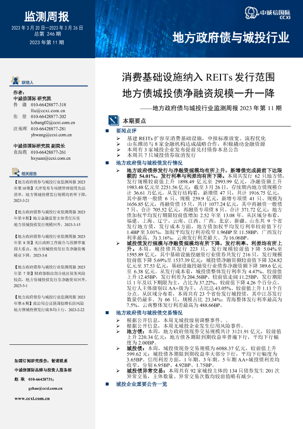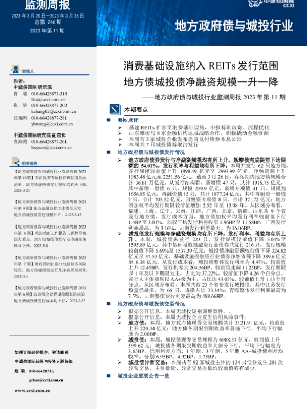 【中诚信国际】【202303】中诚信-消费基础设施纳入REITs发行范围,地方债城投债净融资规模一升一降-14页
