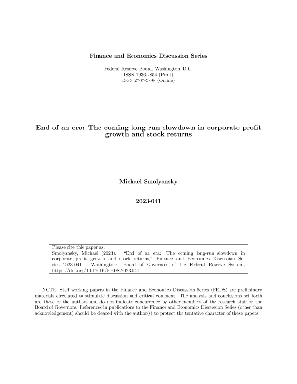 【Board of Governors of the Federal Reserve System】【2023】End of an era The coming long-run slowdown in corporate profit growth and stock returns-31页