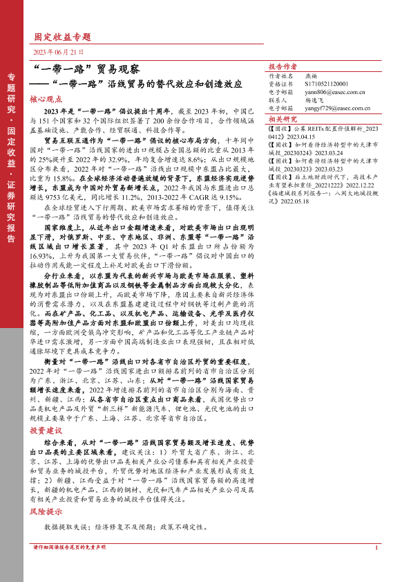 【东亚前海证券】【20230621】“一带一路”贸易观察:“一带一路”沿线贸易的替代效应和创造效应-27页