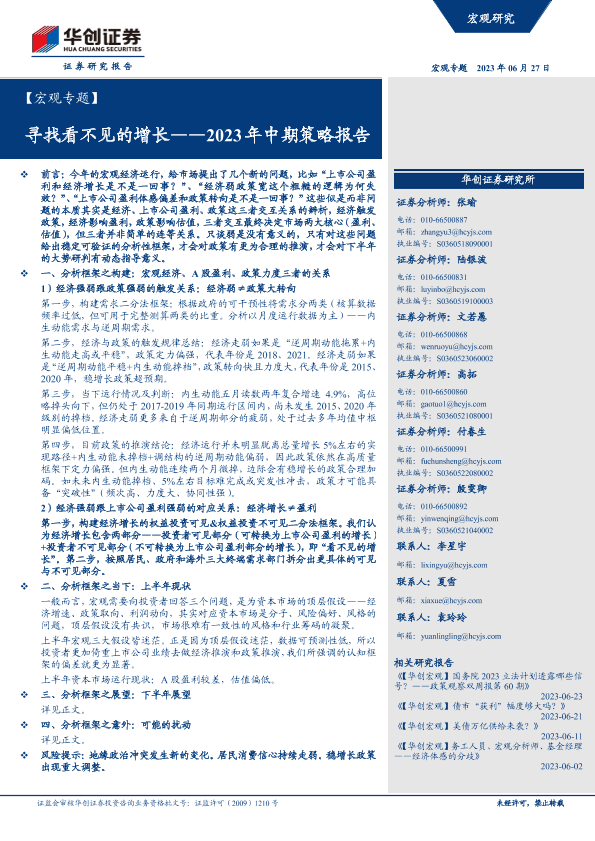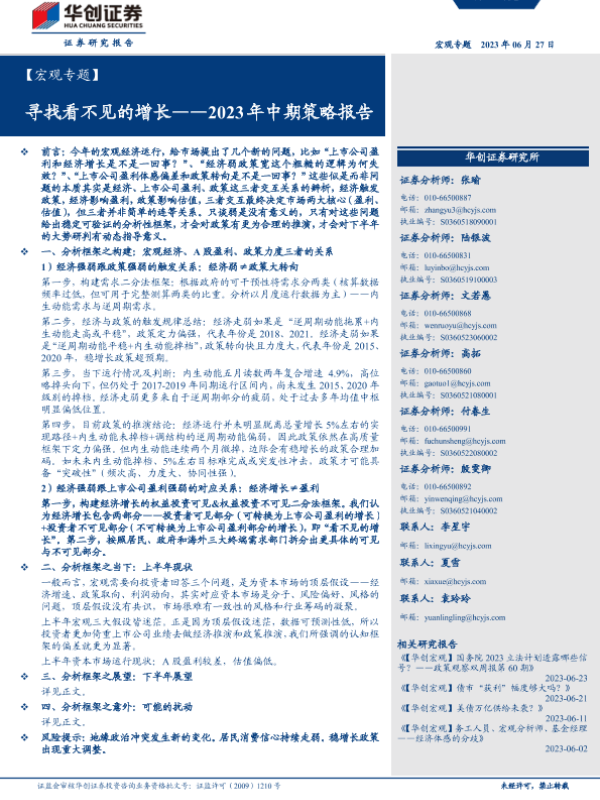 【华创证券】【20230627】【宏观专题】2023年中期策略报告:寻找看不见的增长-39页