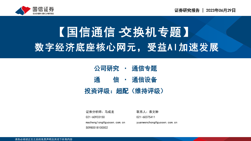 【国信证券】【20230629】【国信通信·交换机专题】数字经济底座核心网元,受益AI加速发展-99页