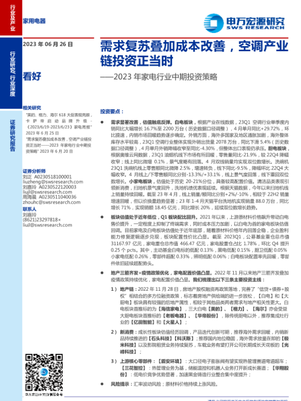 【申万宏源】【20230626】2023年家电行业中期投资策略:需求复苏叠加成本改善,空调产业链投资正当时-39页