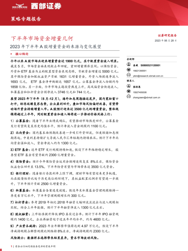 【西部证券】【20230628】2023年下半年A股增量资金的来源与变化展望:下半年市场资金增量几何-20页