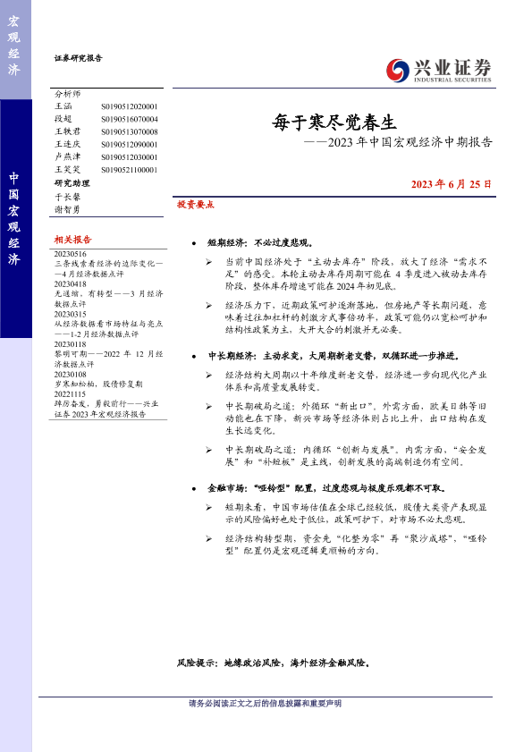 【兴业证券】【20230625】2023年中国宏观经济中期报告:每于寒尽觉春生-25页