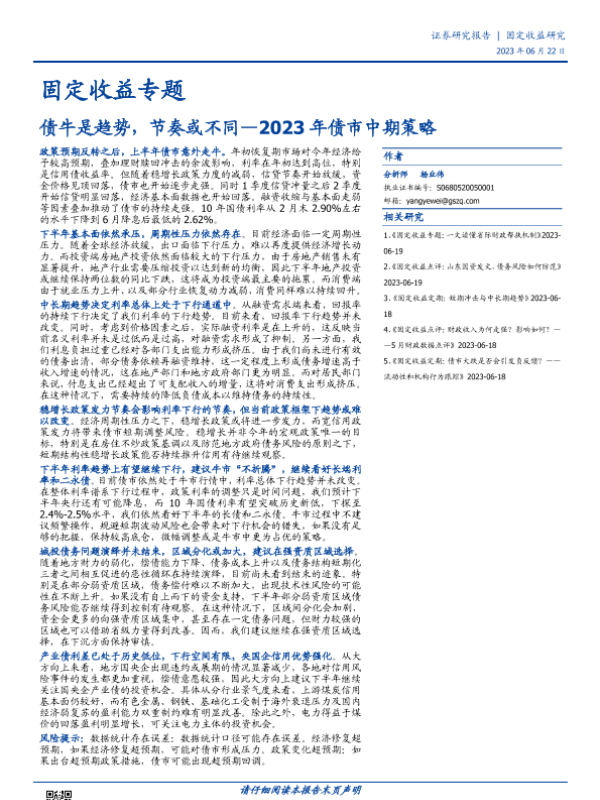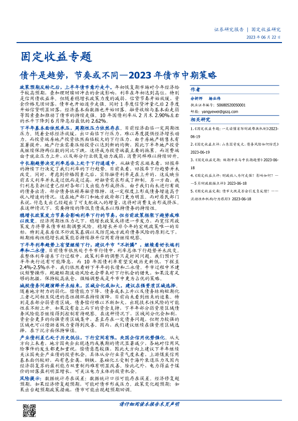【国盛证券】【20230622】2023年债市中期策略:债牛是趋势,节奏或不同-40页