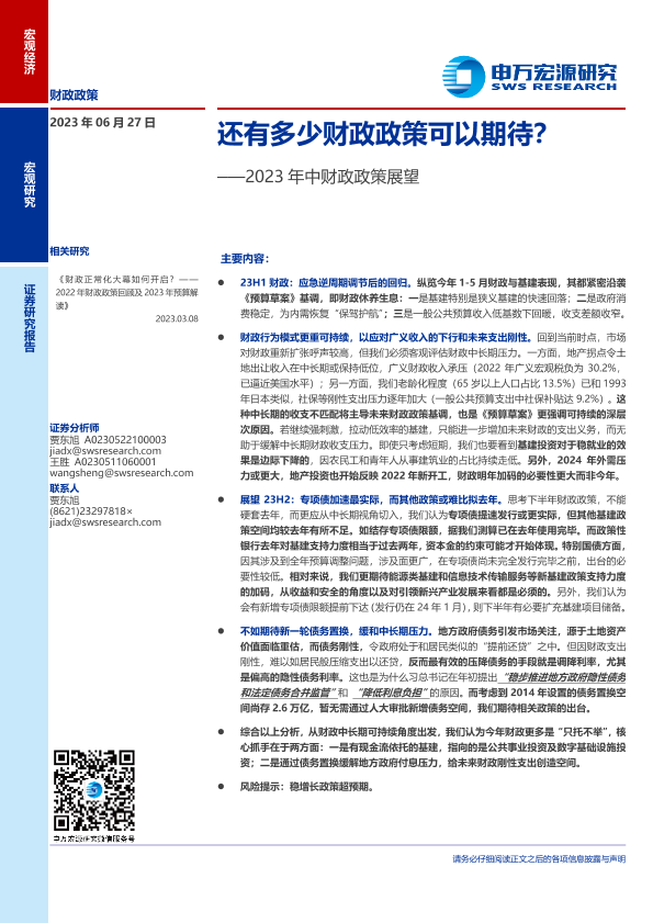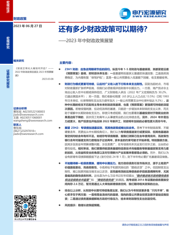 【申万宏源】【20230627】2023年中财政政策展望:还有多少财政政策可以期待?-20页