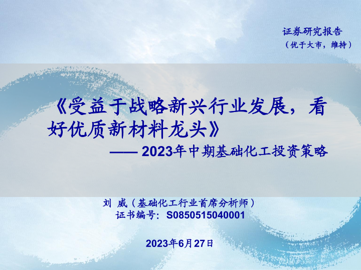 【海通证券】【20230627】2023年中期基础化工投资策略:受益于战略新兴行业发展,看好优质新材料龙头-30页