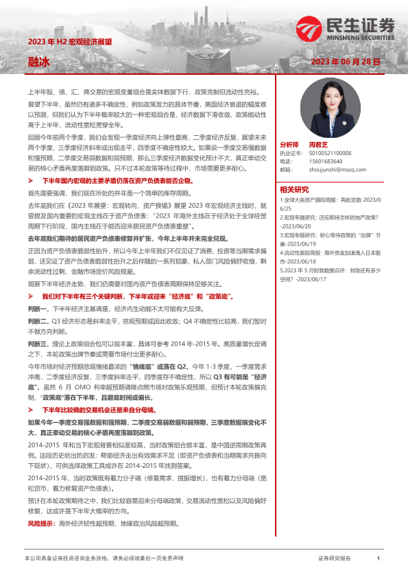 【民生证券】【20230628】2023年H2宏观经济展望:融冰-20页