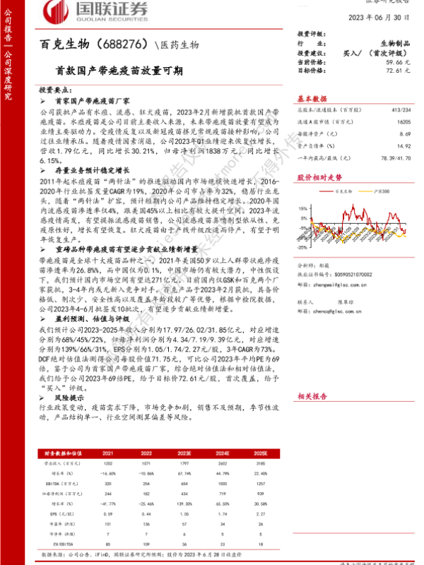 【国联证券】【20230630】百克生物(688276)首款国产带疱疫苗放量可期-30页