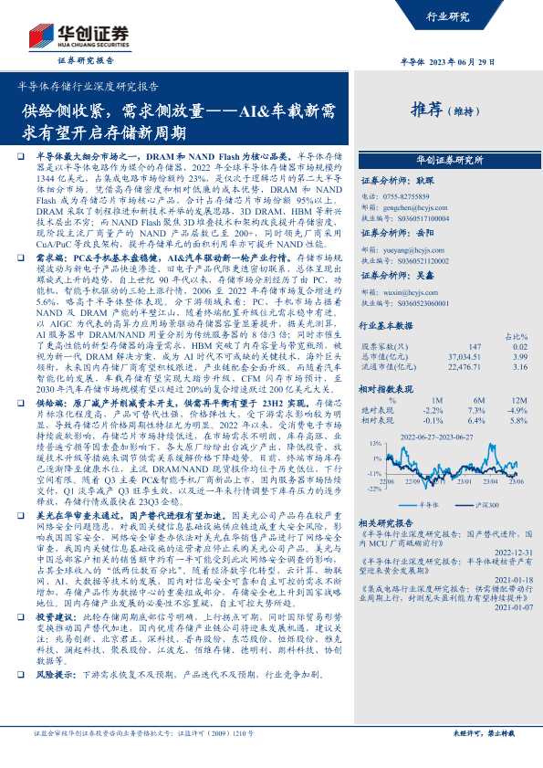 【华创证券】【20230629】半导体存储行业深度研究报告:AI&车载新需求有望开启存储新周期,供给侧收紧,需求侧放量-38页