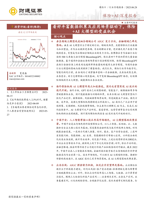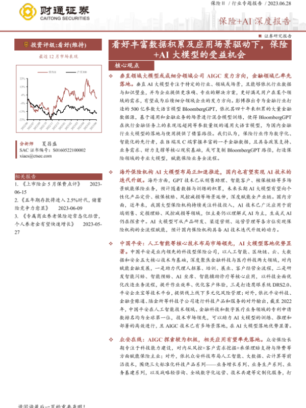 【财通证券】【20230628】保险行业保险+AI深度报告:看好丰富数据积累及应用场景驱动下,保险+AI大模型的受益机会-38页