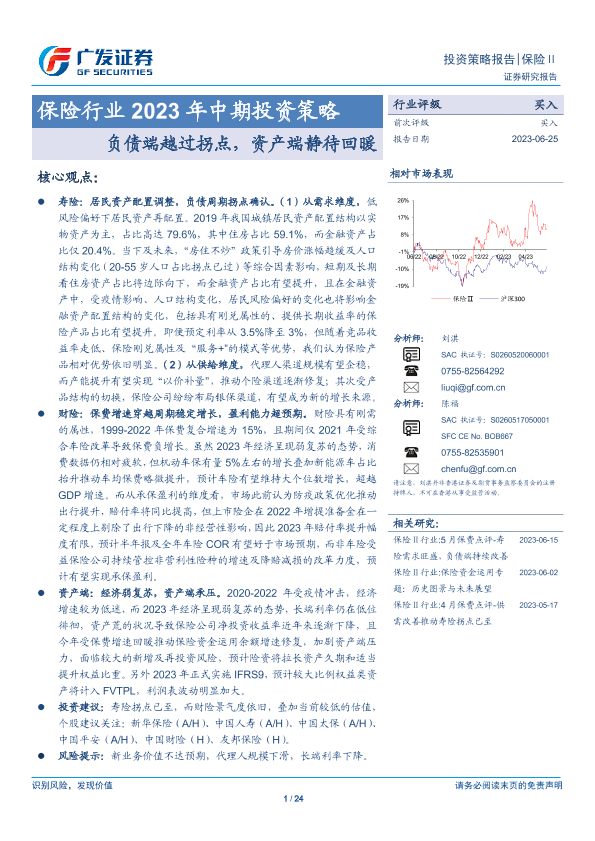 【广发证券】【20230625】保险行业2023年中期投资策略:负债端越过拐点,资产端静待回暖-24页