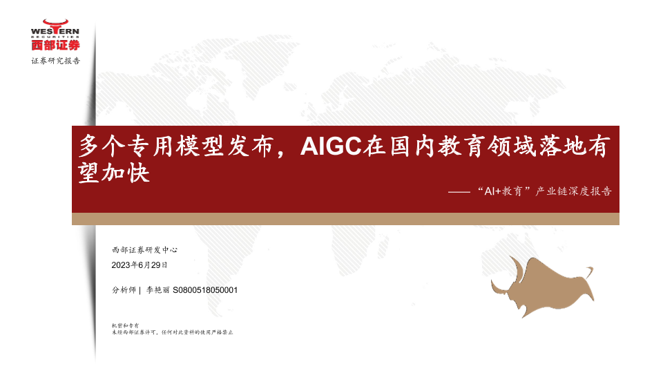 【西部证券】【20230629】传媒行业“AI+教育”产业链深度报告:多个专用模型发布,AIGC在国内教育领域落地有望加快-26页