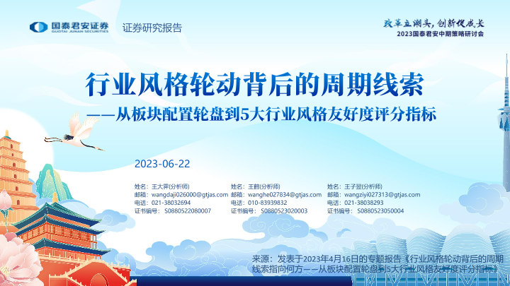 【国泰君安证券】【20230622】从板块配置轮盘到5大行业风格友好度评分指标:行业风格轮动背后的周期线索-34页