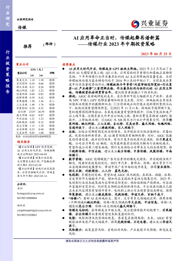 【兴业证券】【20230625】AI应用革命正当时,传媒起舞再谱新篇 ——传媒行业2023年中期投资策略-43页