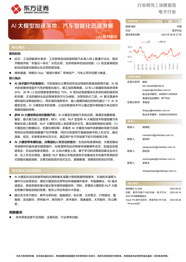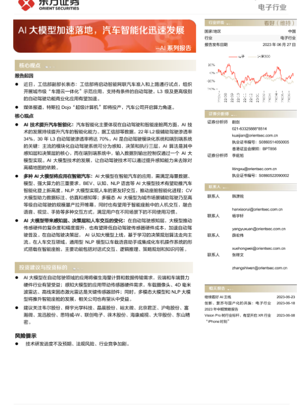 【东方证券】【20230627】电子行业深度报告:AI系列报告-AI大模型加速落地,汽车智能化迅速发展-30页
