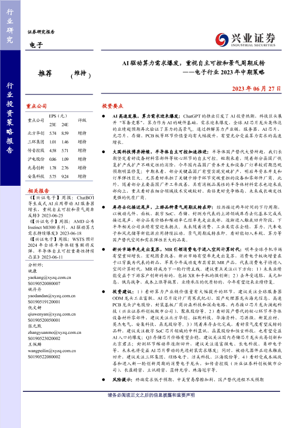【兴业证券】【20230627】AI驱动算力需求爆发,重视自主可控和景气周期反转 ——电子行业 2023年中期策略-88页