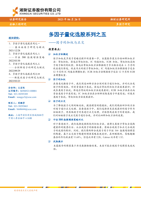 【湘财证券】【20230626】多因子量化选股系列之五:因子的加权与正交-24页