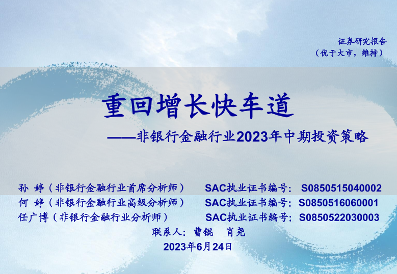 【海通证券】【20230624】非银金融行业2023年中期投资策略:重回增长快车道-69页
