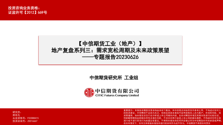 【中信期货】【20230626】工业(地产)专题报告:地产复盘系列三,需求宽松周期及未来政策展望-26页