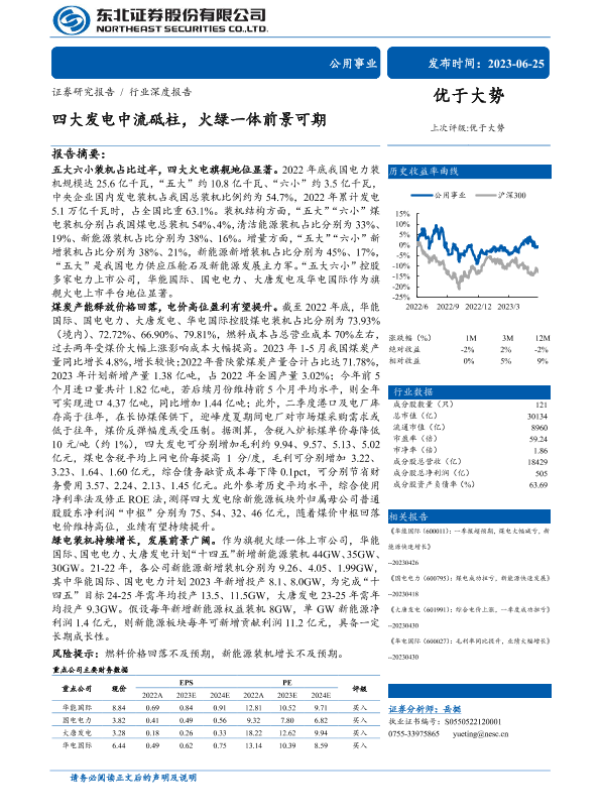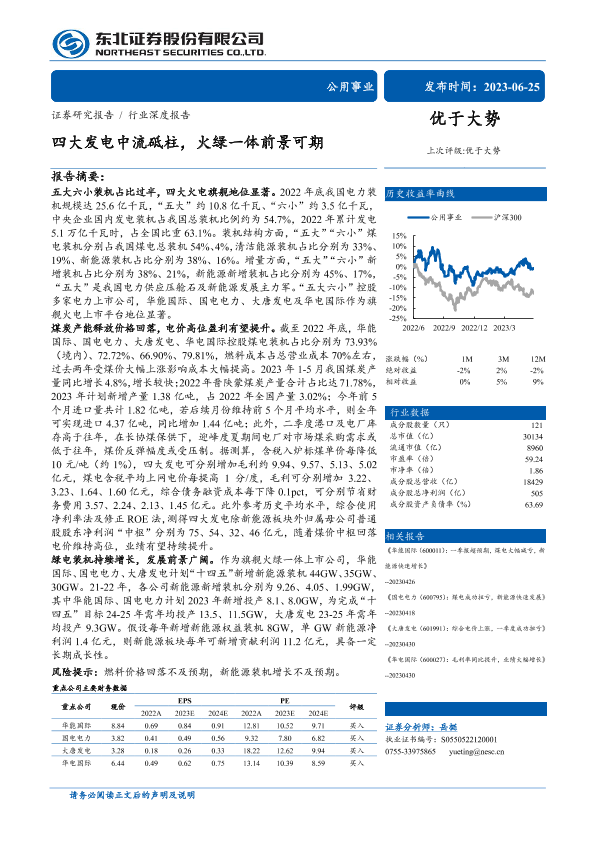 【东北证券】【20230625】公用事业行业深度报告:四大发电中流砥柱,火绿一体前景可期-60页