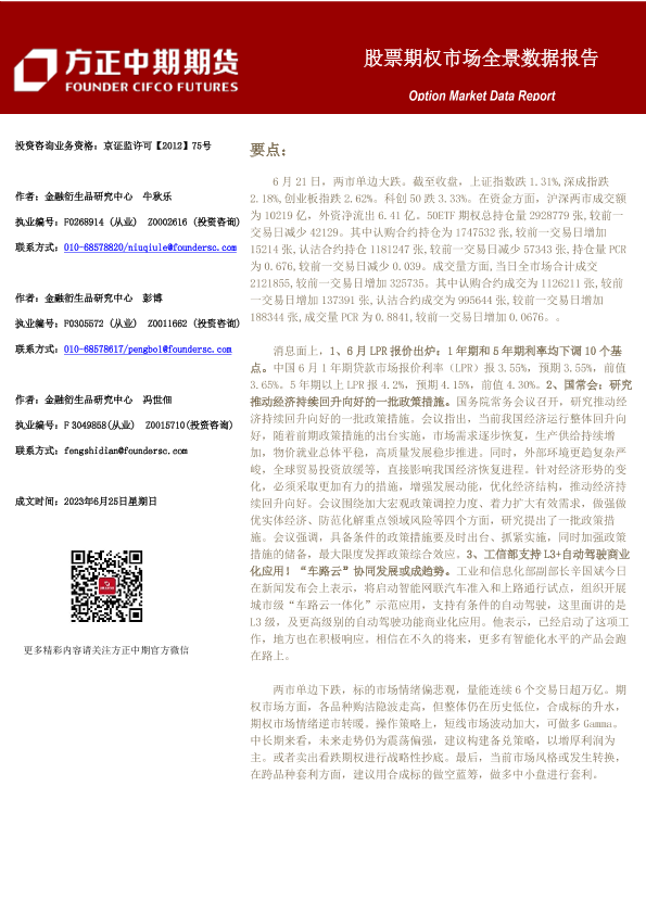 【方正中期期货】【20230625】股票期权市场全景数据报告-44页