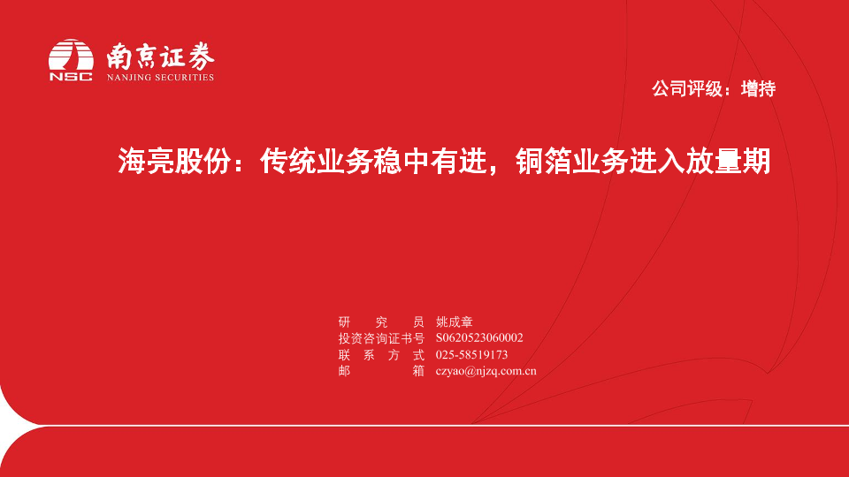 传统业务 南京证券 增持 海亮股份 铜箔业务