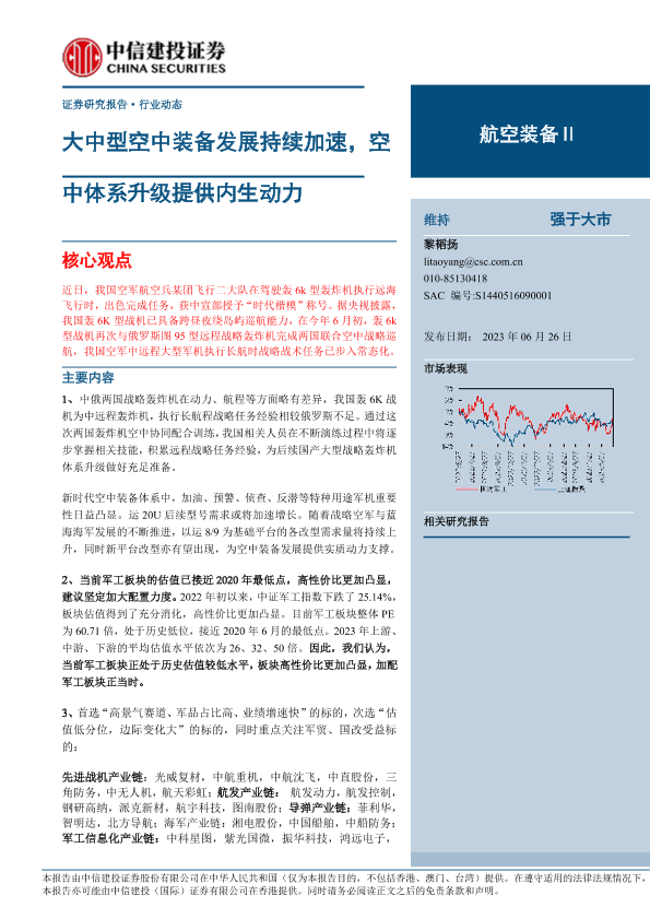 【中信建投证券】【20230626】航空装备行业:大中型空中装备发展持续加速,空中体系升级提供内生动力-26页