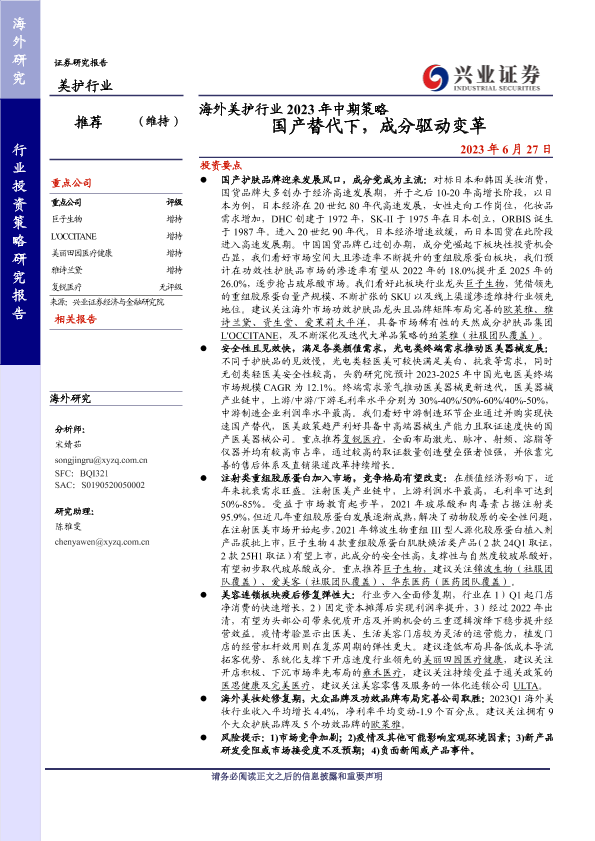 【兴业证券】【20230627】海外美护行业2023年中期策略:国产替代下,成分驱动变革-49页