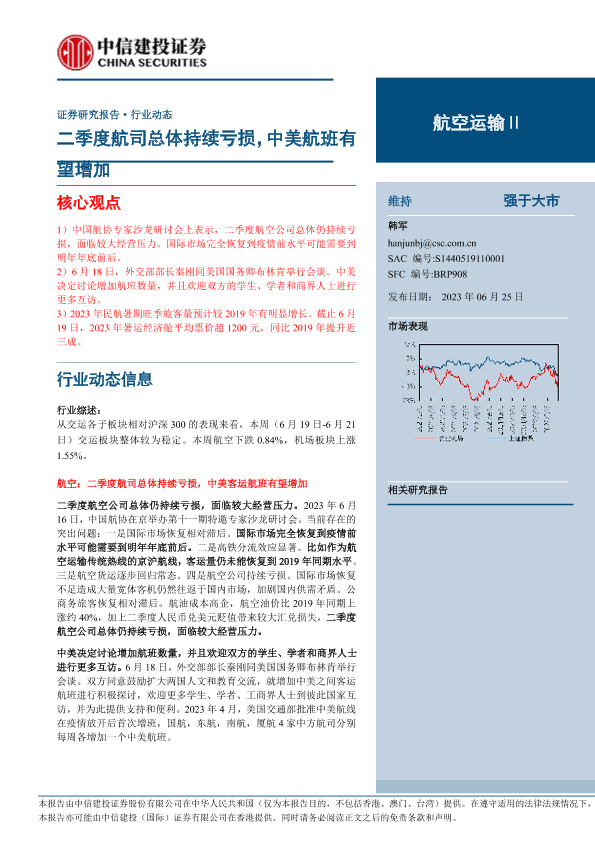【中信建投证券】【20230625】航空运输行业:二季度航司总体持续亏损,中美航班有望增加-25页