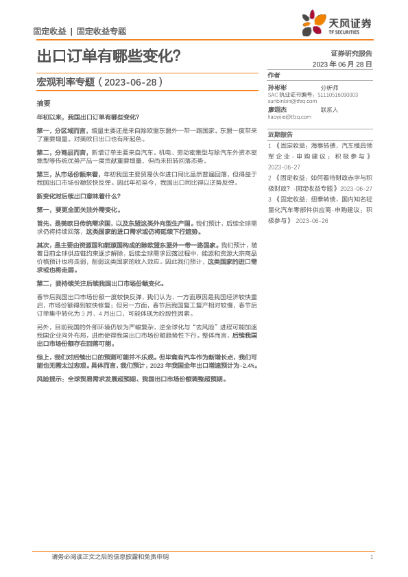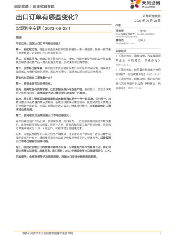 【天风证券】【20230628】宏观利率专题:出口订单有哪些变化?-26页