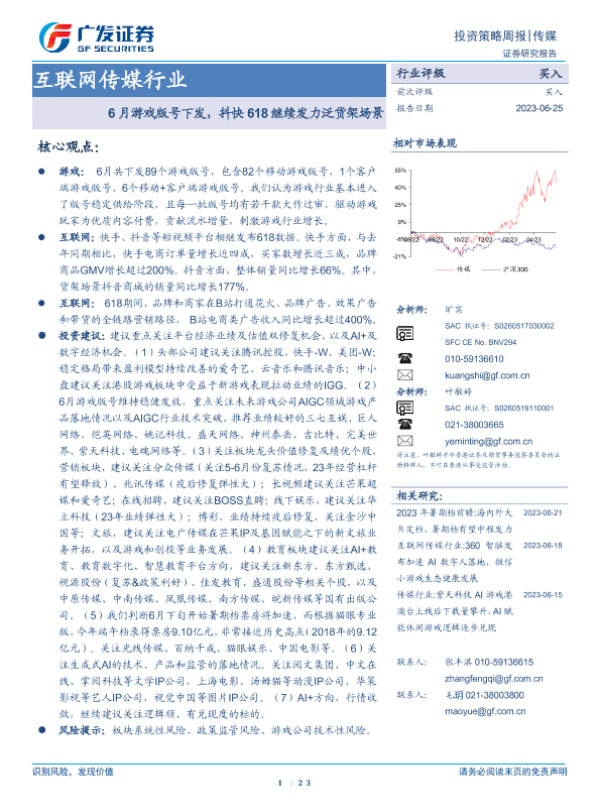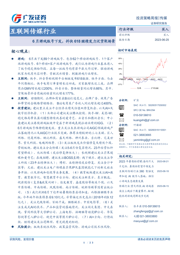 【广发证券】【20230625】互联网传媒行业投资策略周报:6月游戏版号下发,抖快618继续发力泛货架场景-23页