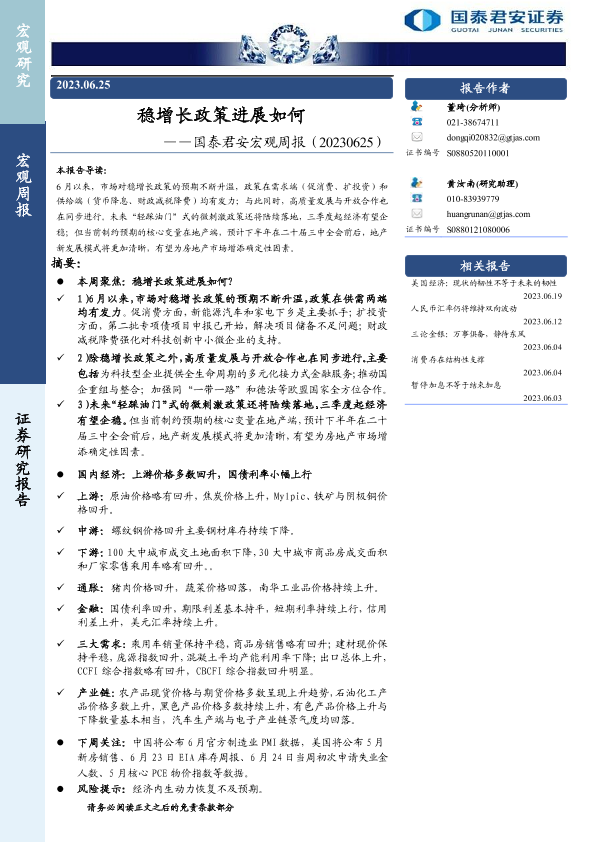 【国泰君安证券】【20230625】宏观周报:稳增长政策进展如何-26页
