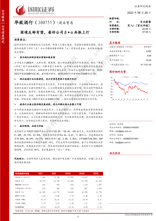 【国联证券】【20230628】华致酒行(300755)困境反转有望,看好公司β+α共振上行-26页