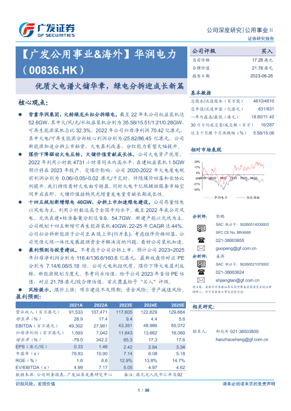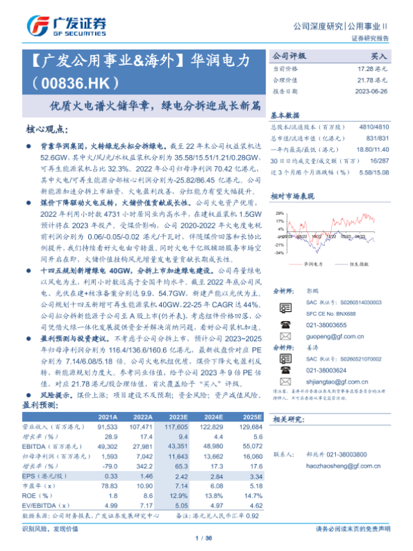 【广发证券】【20230626】华润电力(00836.HK)优质火电谱火储华章,绿电分拆迎成长新篇-36页