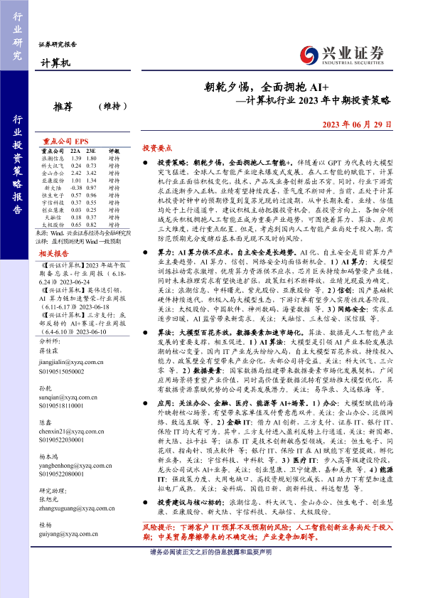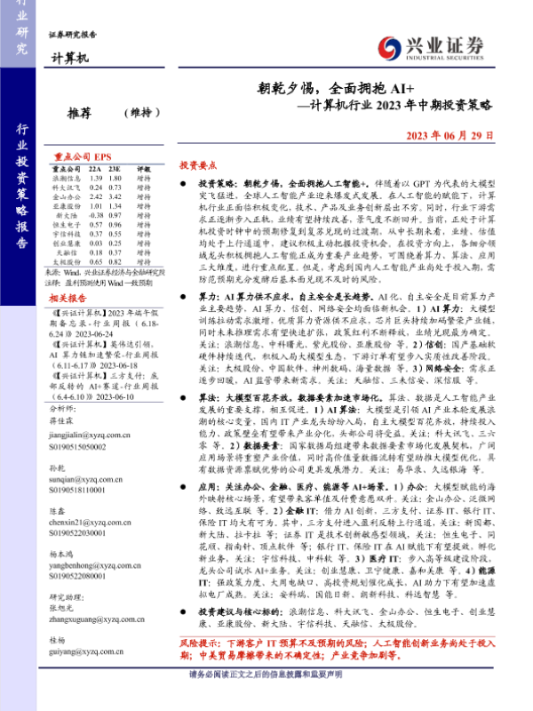 【兴业证券】【20230629】计算机行业2023年中期投资策略:朝乾夕惕,全面拥抱AI+-39页