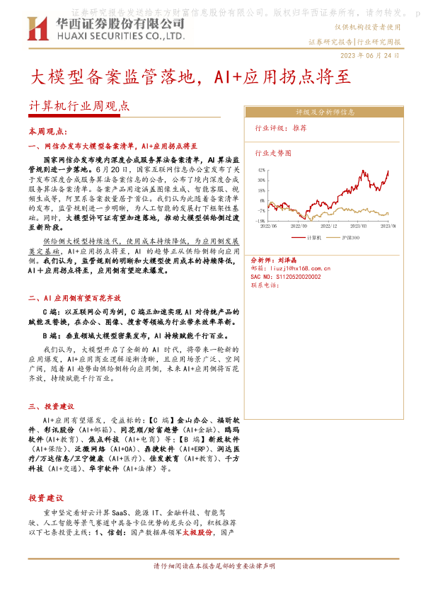 【华西证券】【20230624】计算机行业周观点:大模型备案监管落地,AI+应用拐点将至-25页
